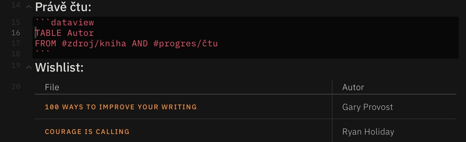 V minulém díle jsem vás uvedl do svého přístupu k poznámkám a PKM. A trochu naivně jsem slíbil, že se příště budu věnovat dělení poznámek, které používám ve své osobní workflow. Jak jsem si začal shromažďovat poznámky a materiály pro tento článek, došlo mi, jak chaotická a stále se vyvíjející je moje workflow. Poslední tři týdny se nesou ve znamení mého seznámení s dataview - Pluginem do Obsidianu, který umožňuje zobrazovat seznamy, tabulky a další formáty na základě dat. To dává prakticky neomezené možnosti pro workflow a kategorizaci. Super, pokud jste hračička jako já. Problém, pokud máte napsat koherentní článek.